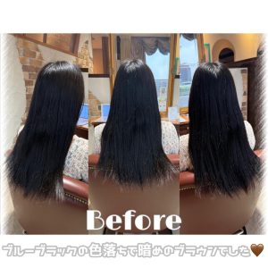 前回のカラーがブルーブラックだったので、色落ちでダークブラウンになっていました。
