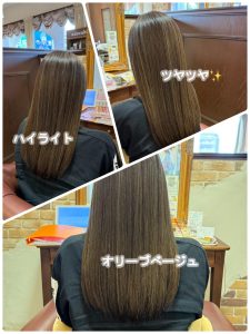 秋ぽくオリーブカラーで夏の紫外線でギラついた髪をカラーしました!