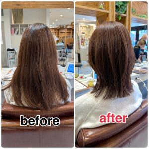 髪質改善トリートメントもプラスして、さらに柔らかくまとまりやすい髪質にしました☆